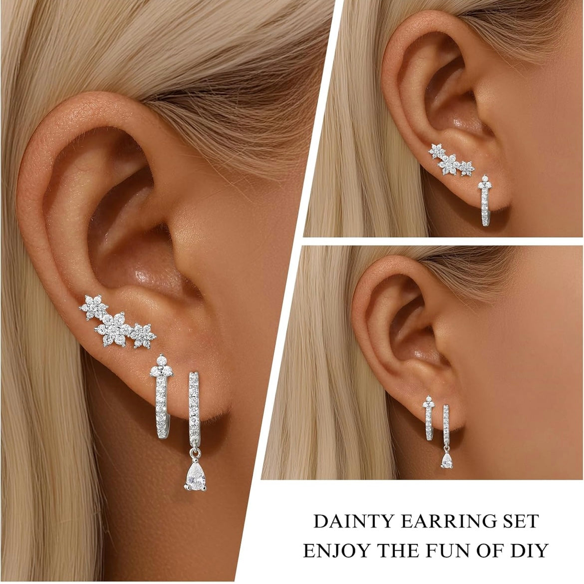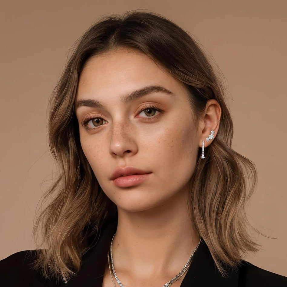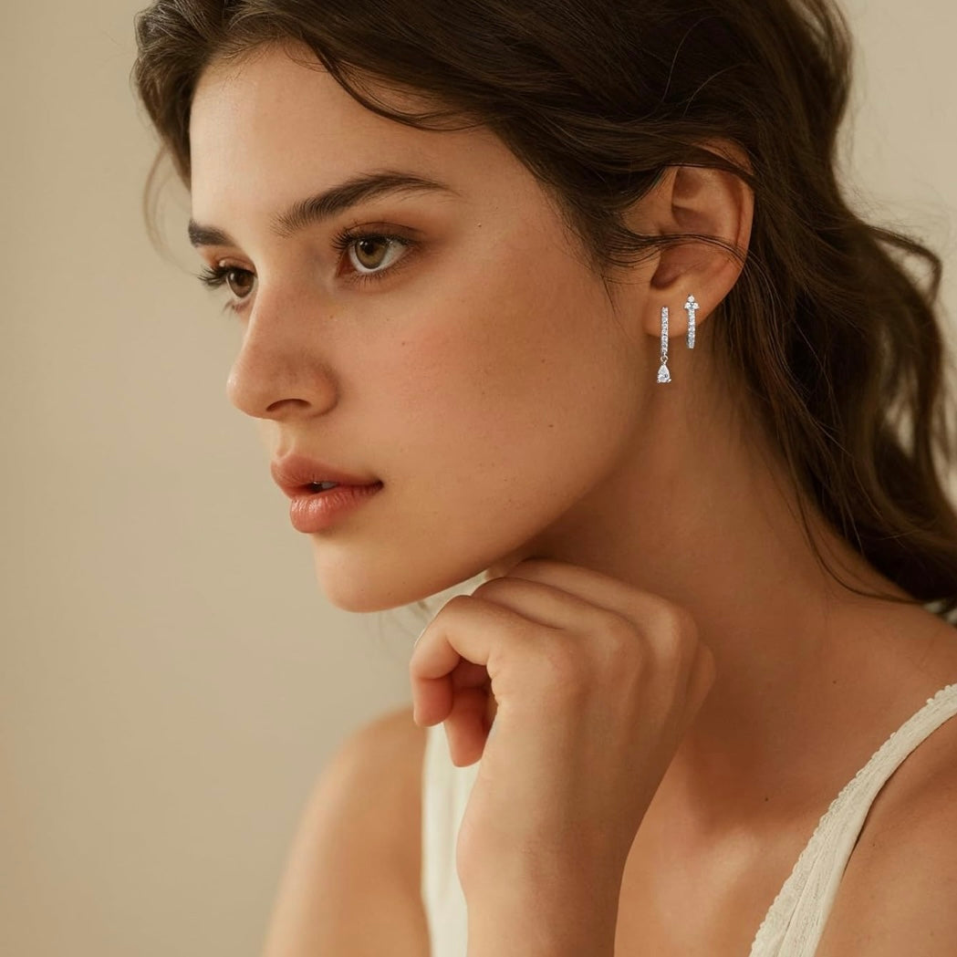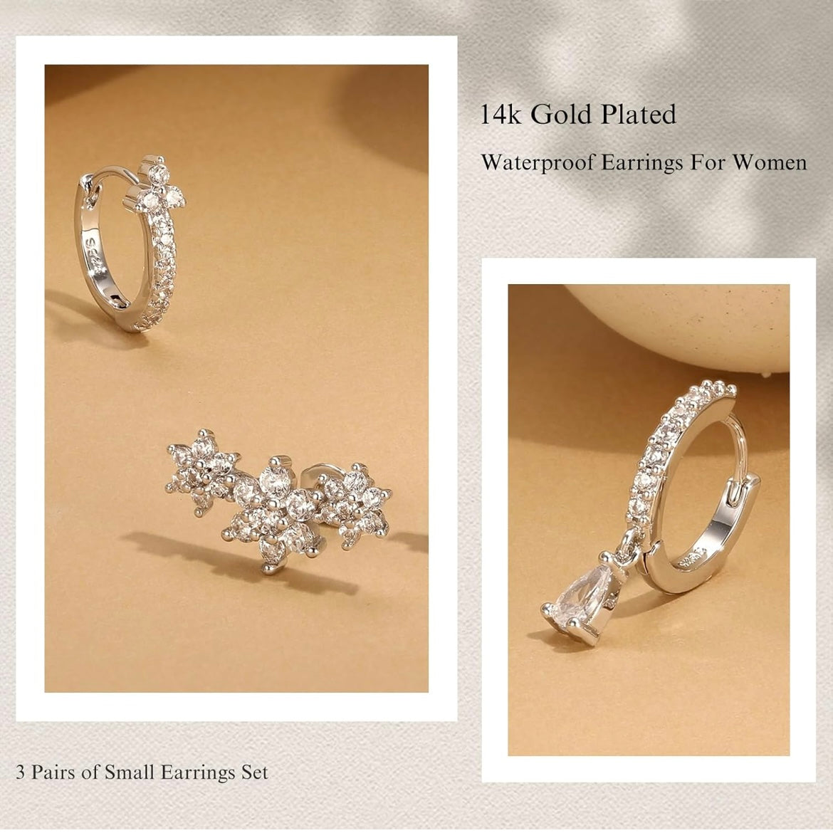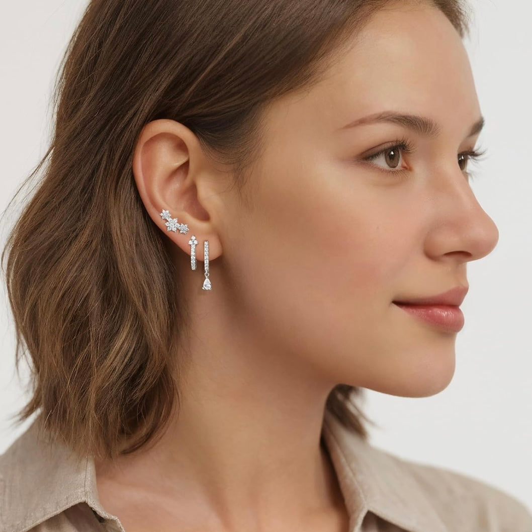 • ✨ Includes 3 pairs: floral stud, teardrop dangle hoop, and CZ-encrusted huggie