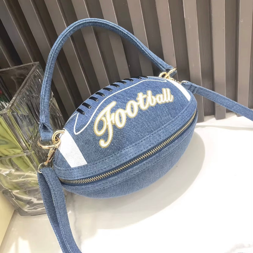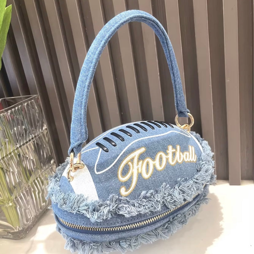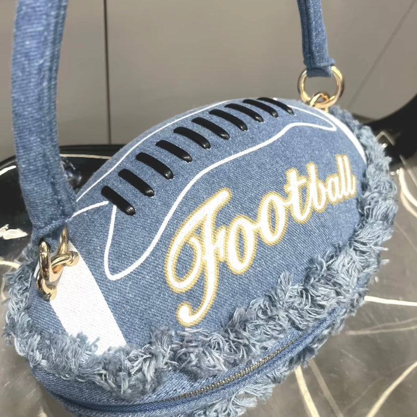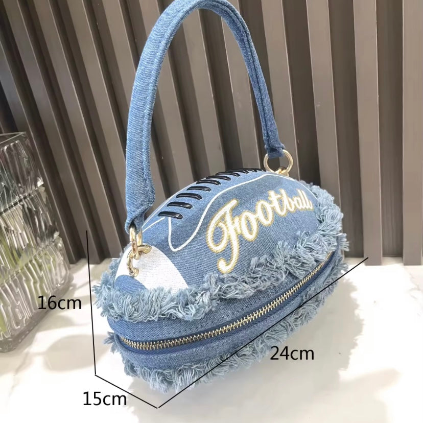 Denim Light Blue Football Handbag - Trendy Sports-Inspired Accessory