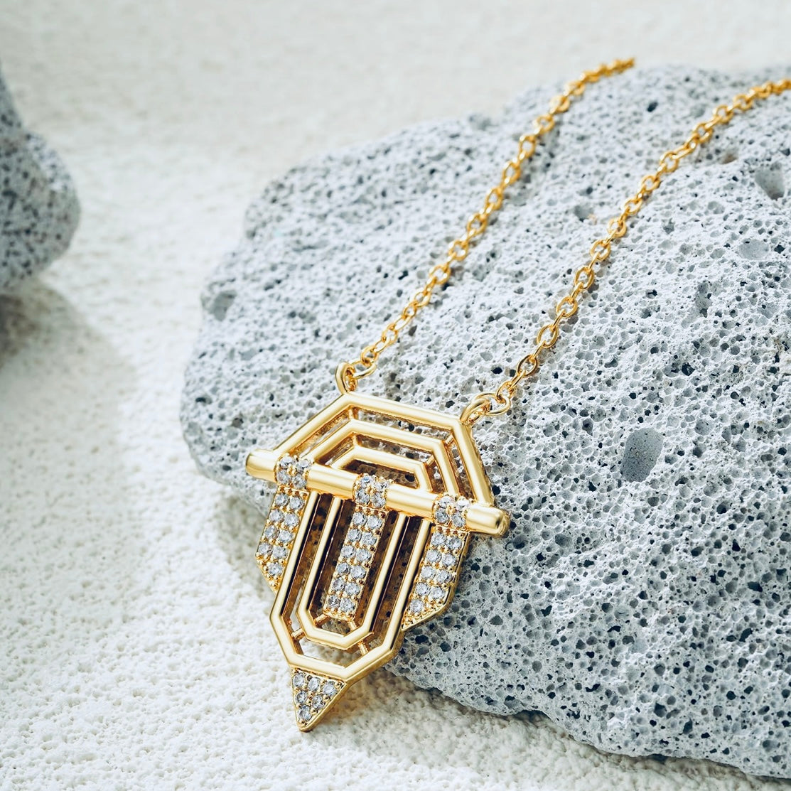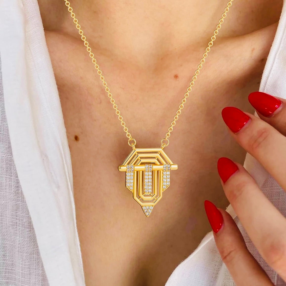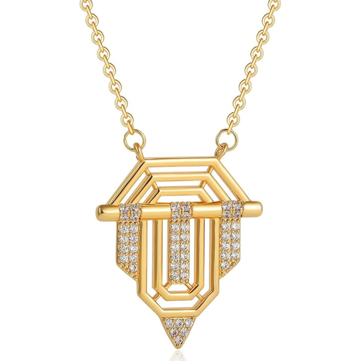 Unveil the epitome of craftsmanship with our exquisite 10K gold over solid silver pendant necklace, meticulously encrusted with flawless grade 4 sparkling cubic zirconia (CZ) stones giving this piece optimal sparkle with every movement. This unique piece dangles gracefully from a delicate but sturdy 17-inch chain, complemented by a versatile 3-inch extender to ensure the perfect fit.