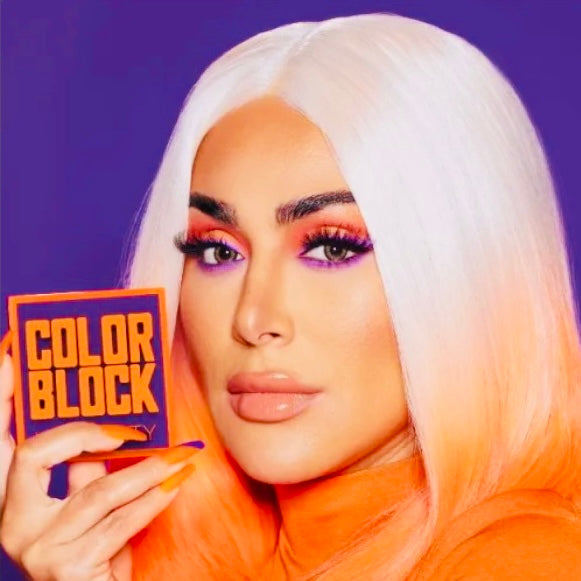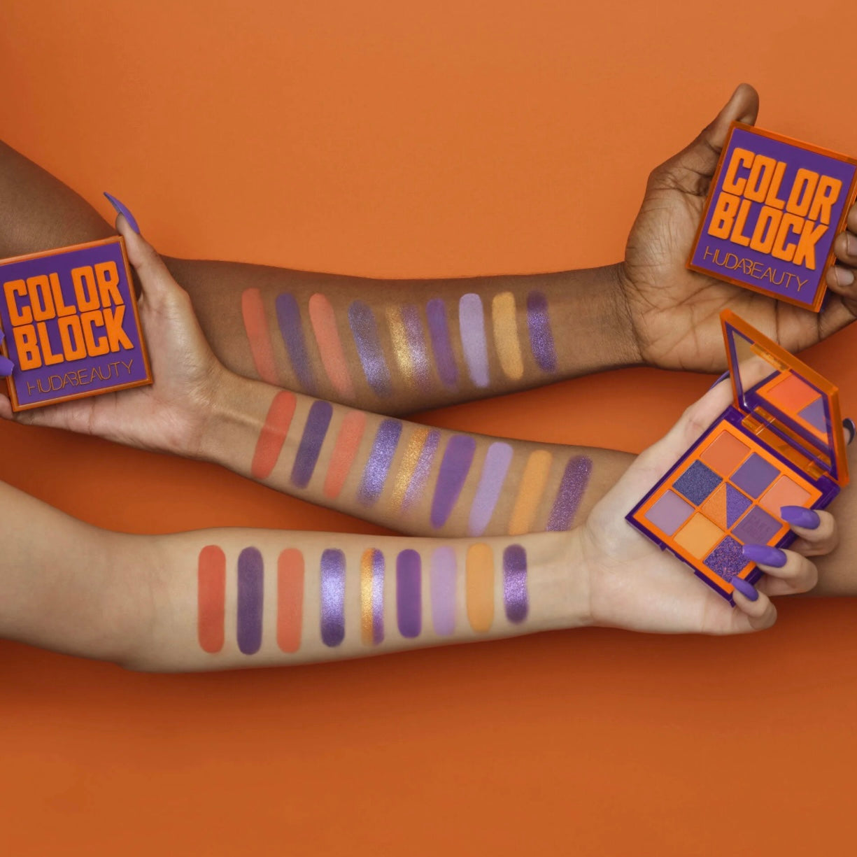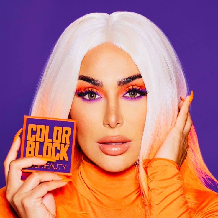 Beauty Lovers and Makeup professionals far and wide, we have something very special for you! Huda Beauty New Color Block Obsessions High Pigmented Eyeshadow And Liner Palette in the most Beautiful Purples and Bright Orange colors known on the planet!