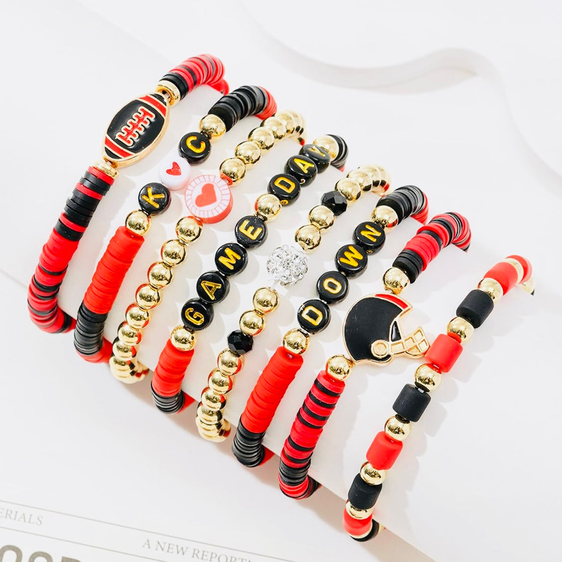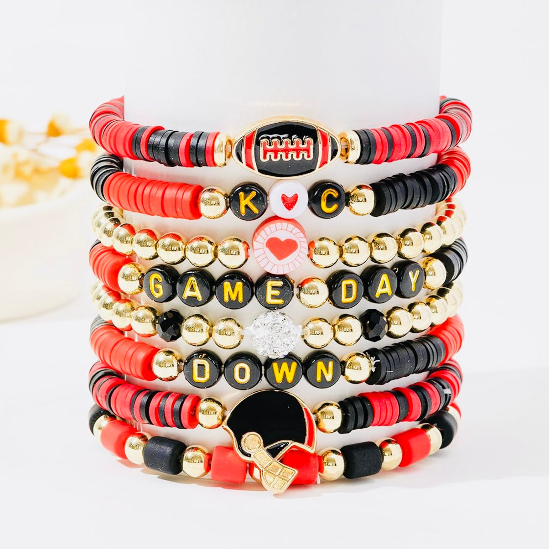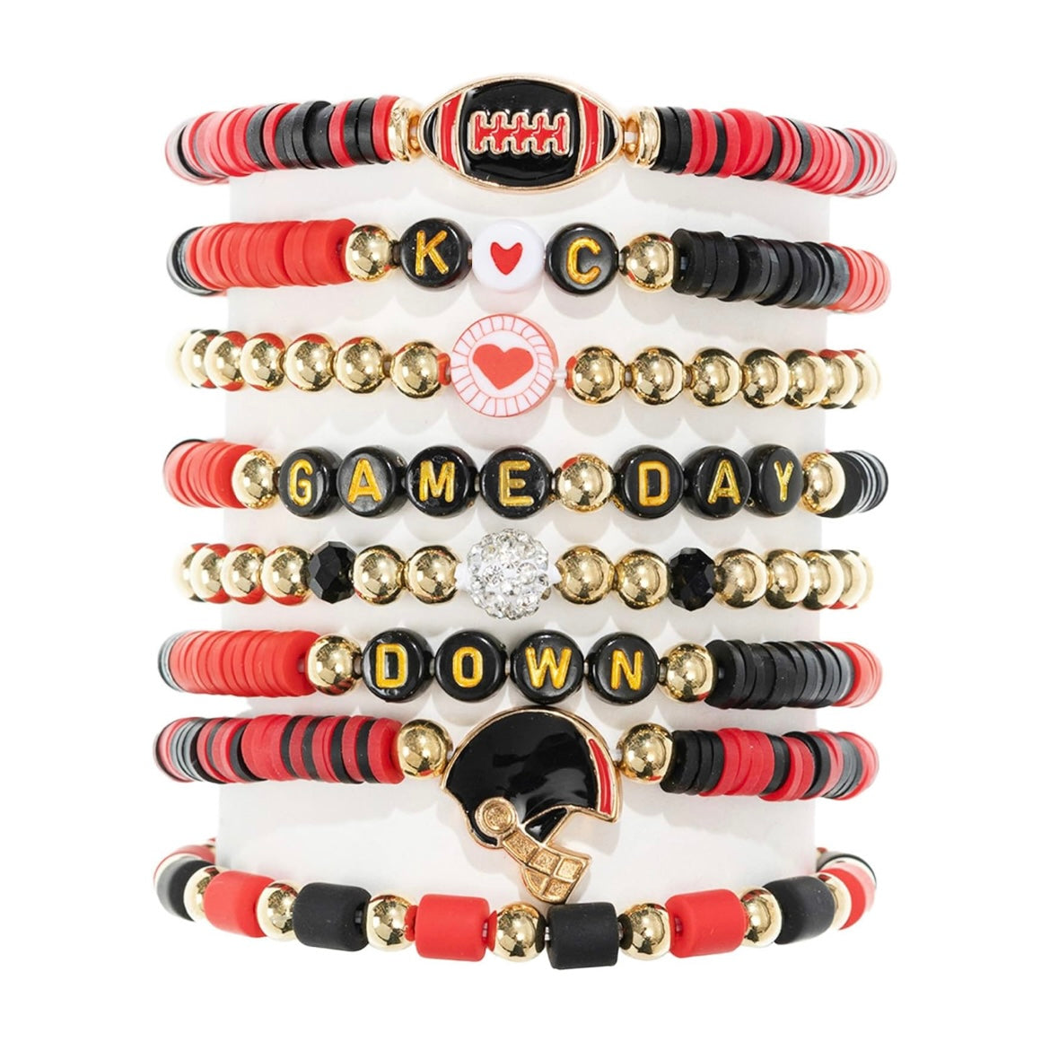 KC GameDay Red, Black, Gold CZ 8 Piece beaded Friendship Bracelet Set