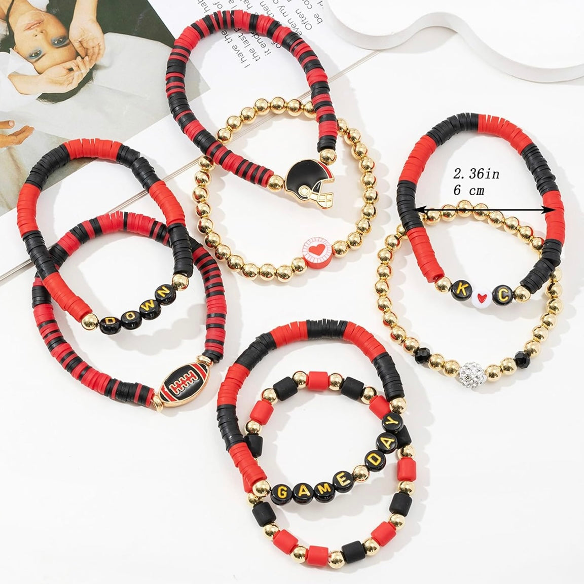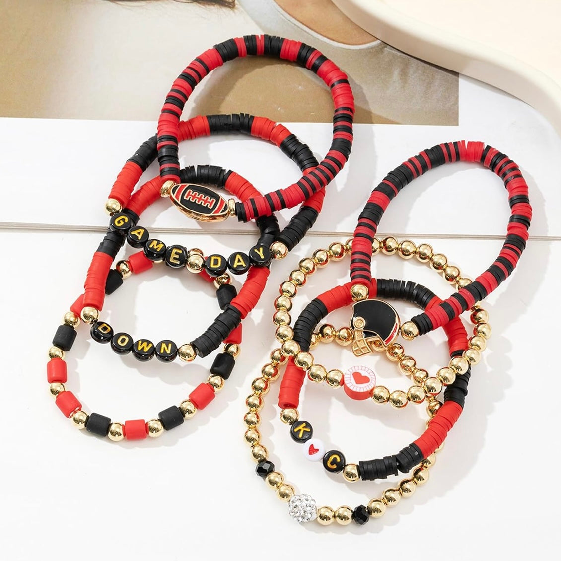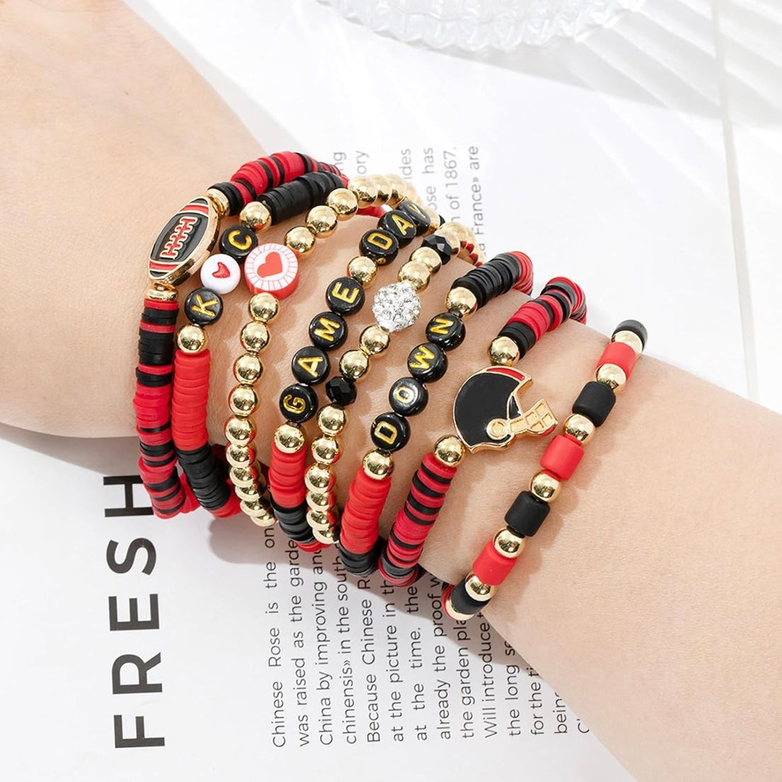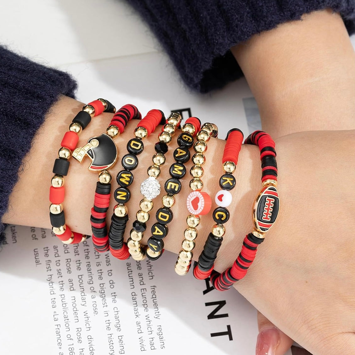 KC GameDay Red, Black, Gold CZ 8 Piece beaded Friendship Bracelet Set