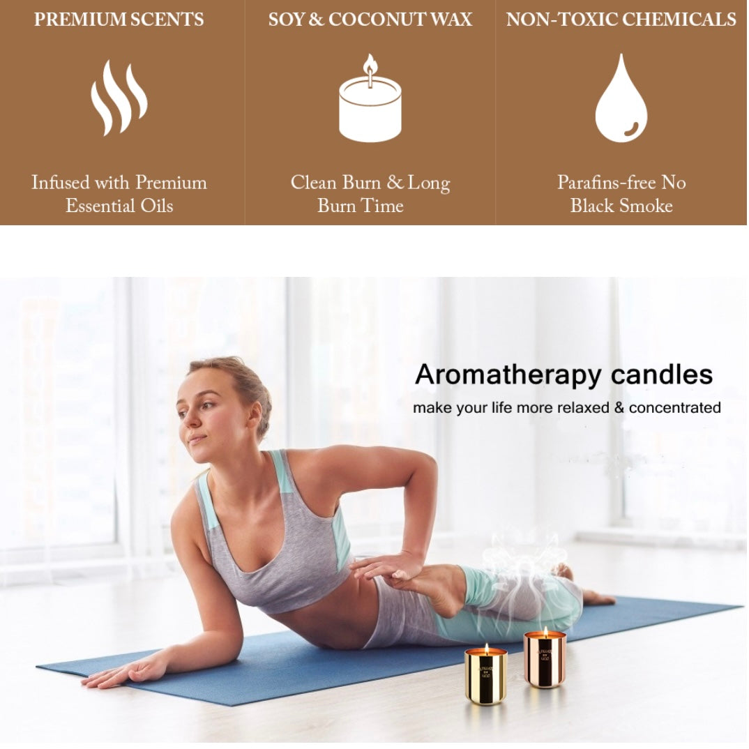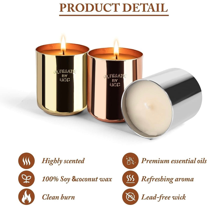- Candles are housed in Elegant Metal Containers in the colors Gold, Rose Gold & Silver