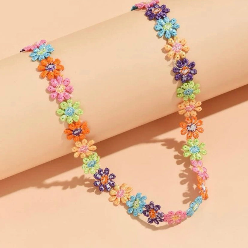Multi-Colored Pastel Handcrafted Adjustable Floral Themed Flower Choker Necklace