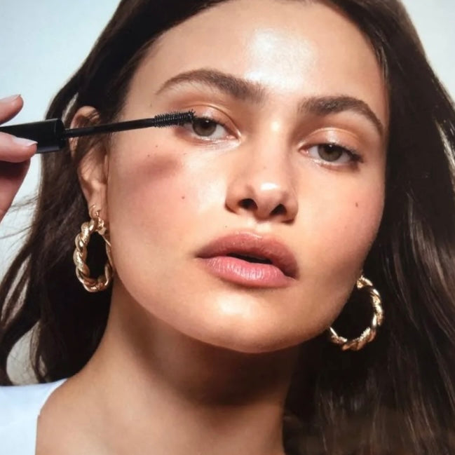 Place the wand on the base of upper lashes, then wiggle upward. Use small bristles at the tip for small lashes on outer corners and bottom lashes. One coat for a natural, lengthened look. Two to three coats for extra thickening and impact.